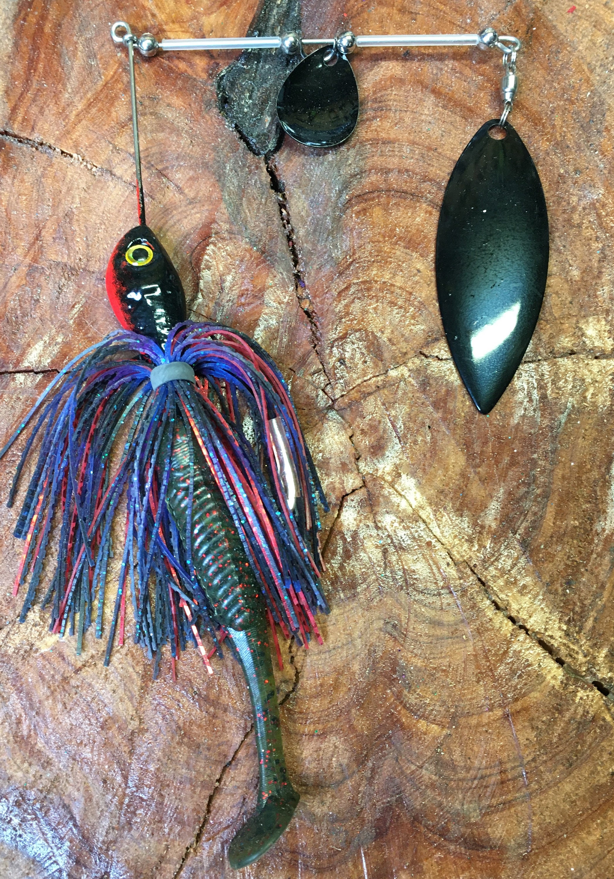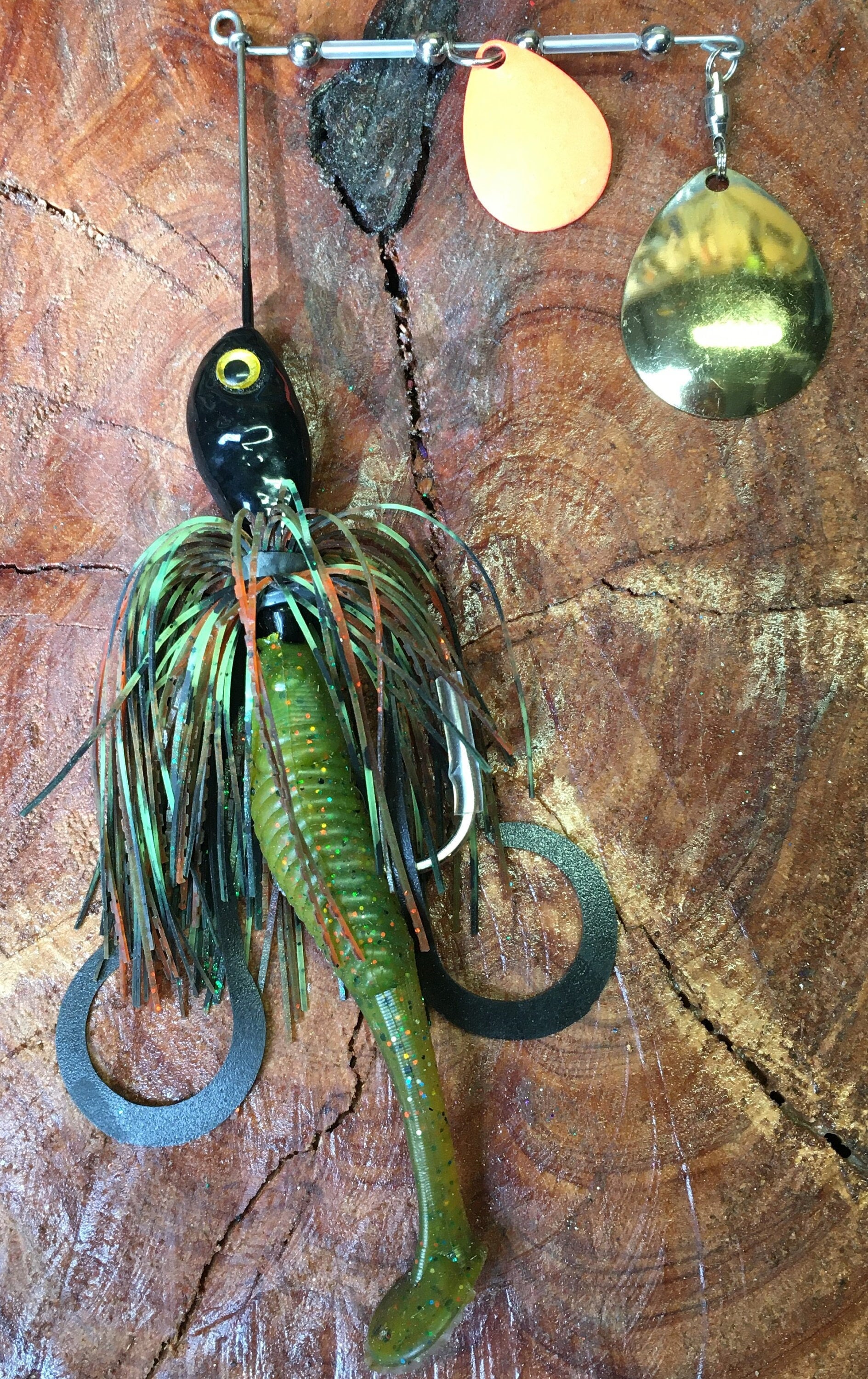 Dinolures Spinnerbait, 1 oz heads with soft plastic minnow