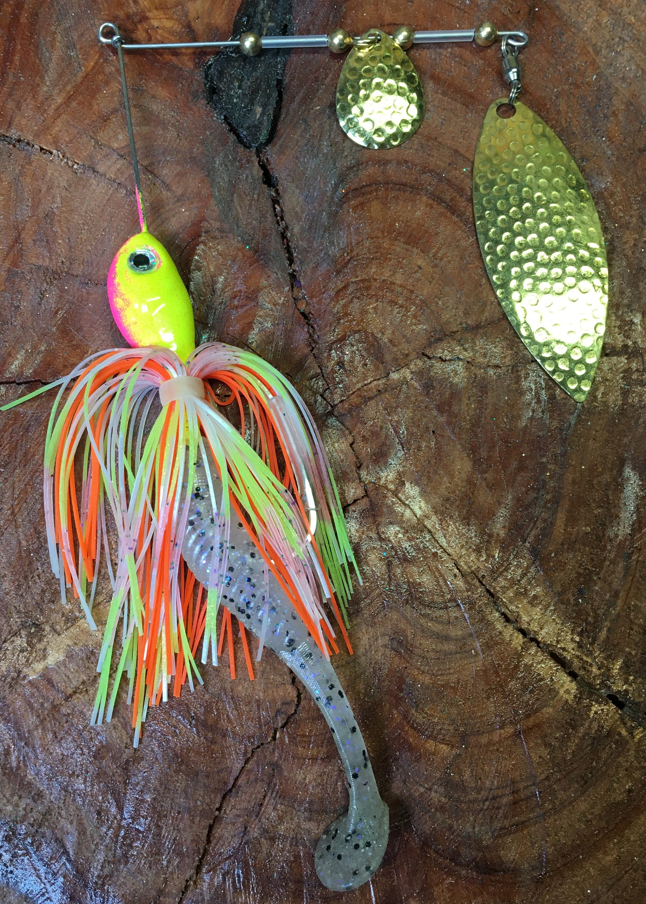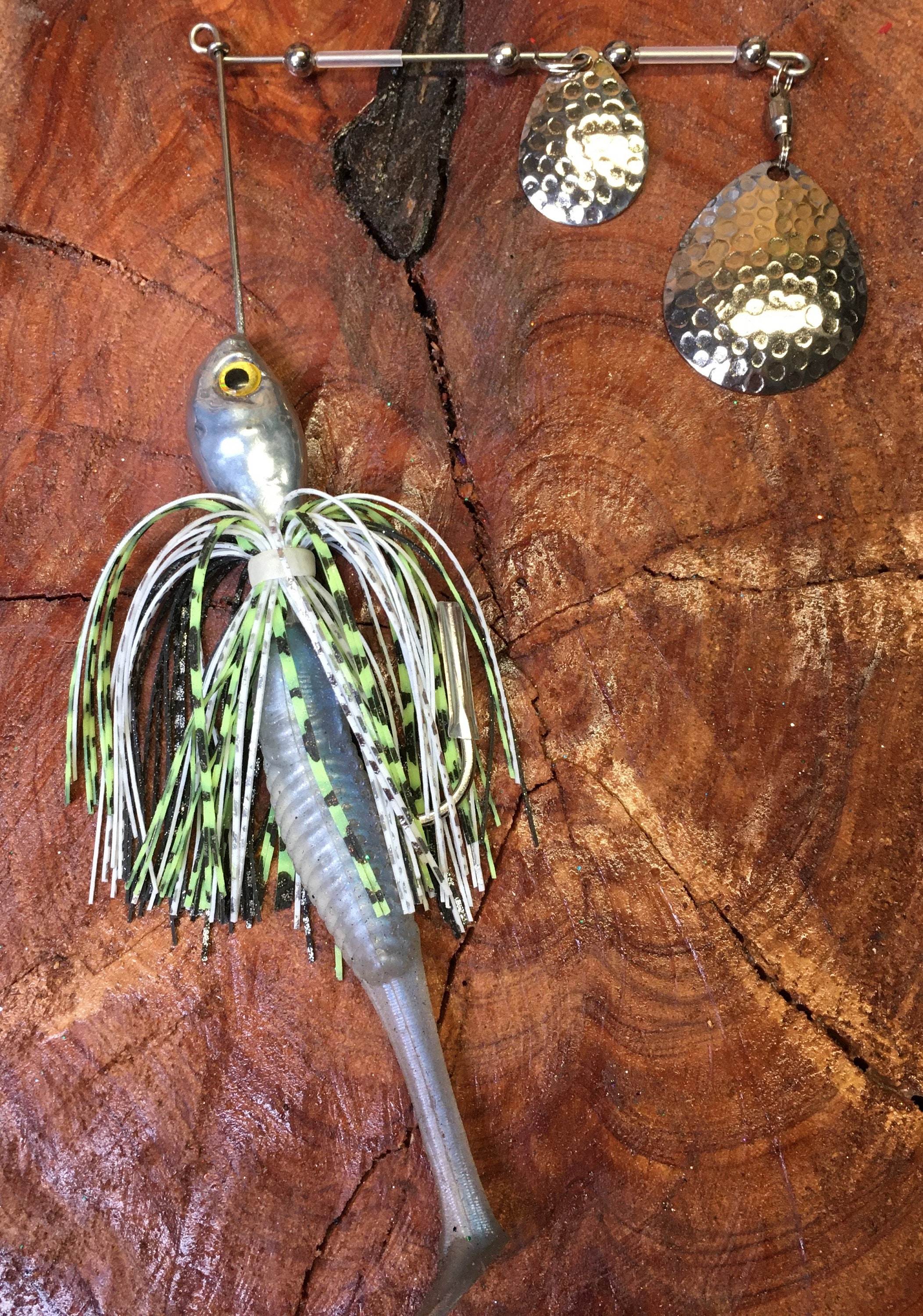 Dino Spinnerbait, 1 oz heads with soft plastic minnow No:2